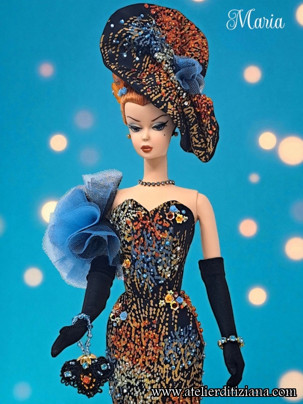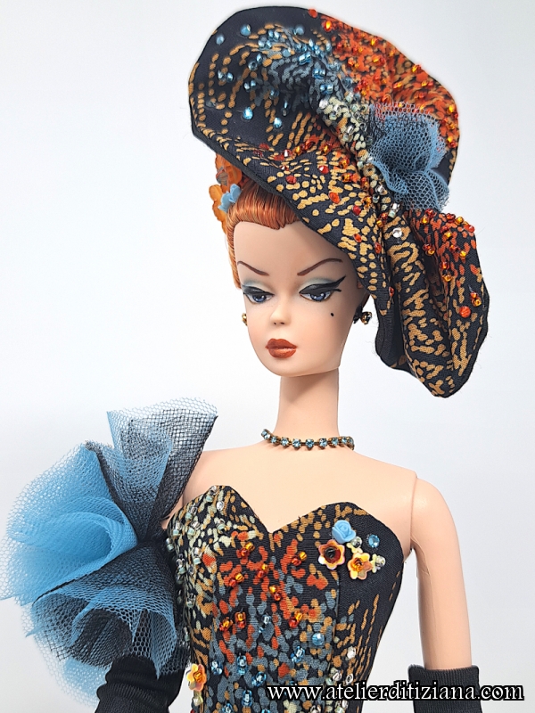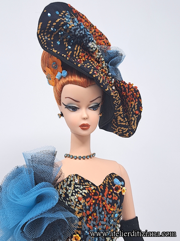 The hat is also made with shantung of pure silk and embroiderd maintaining the style of the dress.