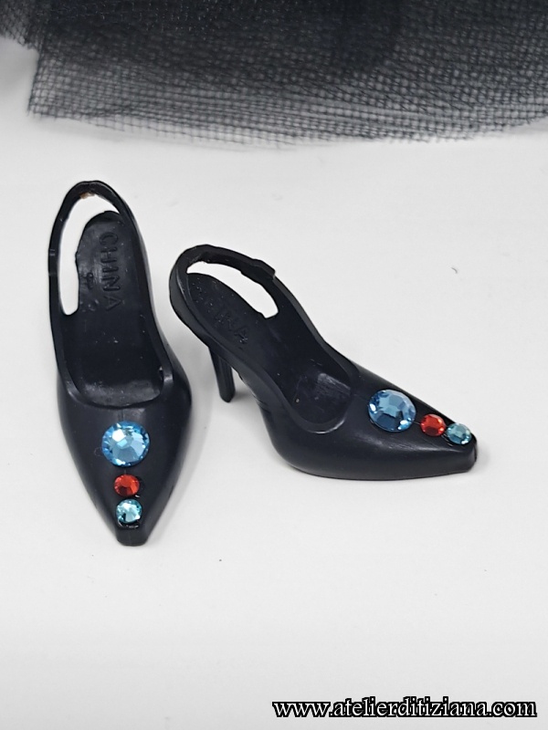 The pochette, in black lace, is enriched with Swarovski crystals and rhinestones.